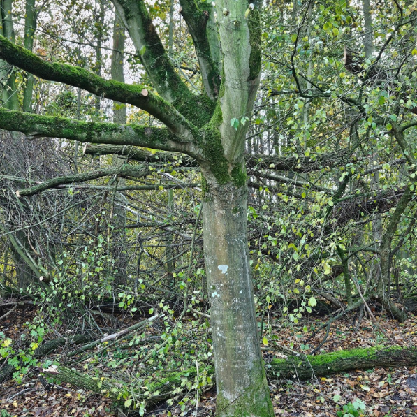 Jaren gingen voorbij. De uitzichttoren is al lang verdwenen. De esdoorn werd hoger, sterker en hield zich staande tussen zijn buren. Tot op een dag, al weer jaren geleden, de wind opstak. Het soort wind dat verhalen fluistert en soms besluiten neemt. Een dikke oude wilg, die al langer wankelde, gaf op en viel. Niet netjes, niet zacht. Met een enorme klap sloeg hij tegen de esdoorn en rukte bijna de halve kroon weg.